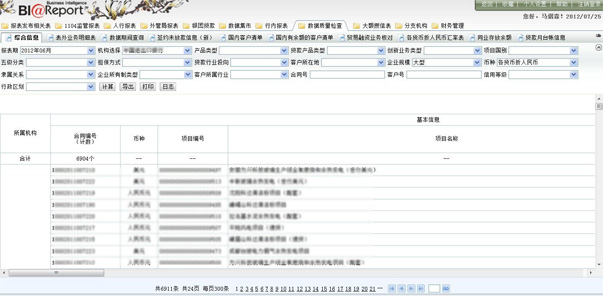 中國進出口銀行新一代報表系統(tǒng)的數(shù)據(jù)來源于各務系統(tǒng),包括信貸、國結、資金、會計、財管等,通過分析各業(yè)務系統(tǒng)之間的關系,并輔助以數(shù)據(jù)的補錄,通過數(shù)據(jù)倉庫的思想整合出符合"中國進出口銀行新一代報表系統(tǒng)"要求的5大主題群,分別為"總賬"、"信貸"、"國結"、"資金"、"存款",各主題群之間即可相互獨立,也可相互關聯(lián),通過各主題群的應用,完成了"1104報表生成和報送"、"人行報表報送"、"外管局報表報送"、"銀監(jiān)會報表報送"、"行內各報表的查詢和報送"、"客戶風險管理"以及"統(tǒng)計工作考評"等應用模塊。