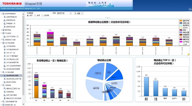 東芝制造車間生產(chǎn)過程中的數(shù)據(jù)包括車間人員、物料、加工設備、工票、工裝、加工過程等,涉及車間各個部分。面向東芝內(nèi)部的生產(chǎn)部門,為一線生產(chǎn)人員及質(zhì)檢部門提供數(shù)據(jù)填報及數(shù)據(jù)分析平臺,是一個完全基于互聯(lián)網(wǎng)技術構(gòu)建的智能數(shù)據(jù)系統(tǒng)。