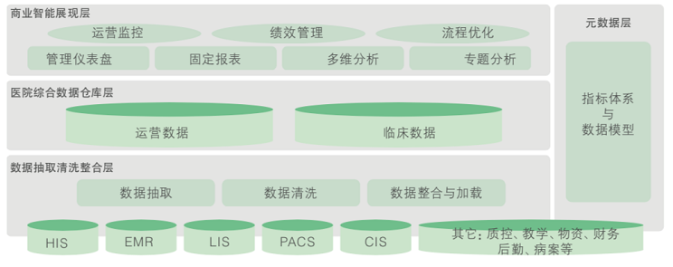 1)基于醫(yī)院戰(zhàn)略發(fā)展的需要,醫(yī)院信息化經(jīng)過這些年的建設(shè)信息系統(tǒng)面臨轉(zhuǎn)型,即從面向應(yīng)用到面向分析的轉(zhuǎn)型,同時(shí)能夠提升信息系統(tǒng)價(jià)值,使信息化向數(shù)據(jù)分析、決策支持領(lǐng)域邁進(jìn)。