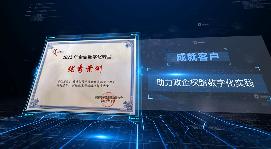 在工信部和廣東省人民政府聯(lián)合主辦的2022中國數(shù)字經(jīng)濟(jì)創(chuàng)新發(fā)展大會的“企業(yè)數(shù)字化轉(zhuǎn)型引領(lǐng)制造業(yè)高質(zhì)量發(fā)展論壇"上,億信華辰制造業(yè)主數(shù)據(jù)管理解決方案被評為2022年企業(yè)數(shù)字化轉(zhuǎn)型優(yōu)秀案例。