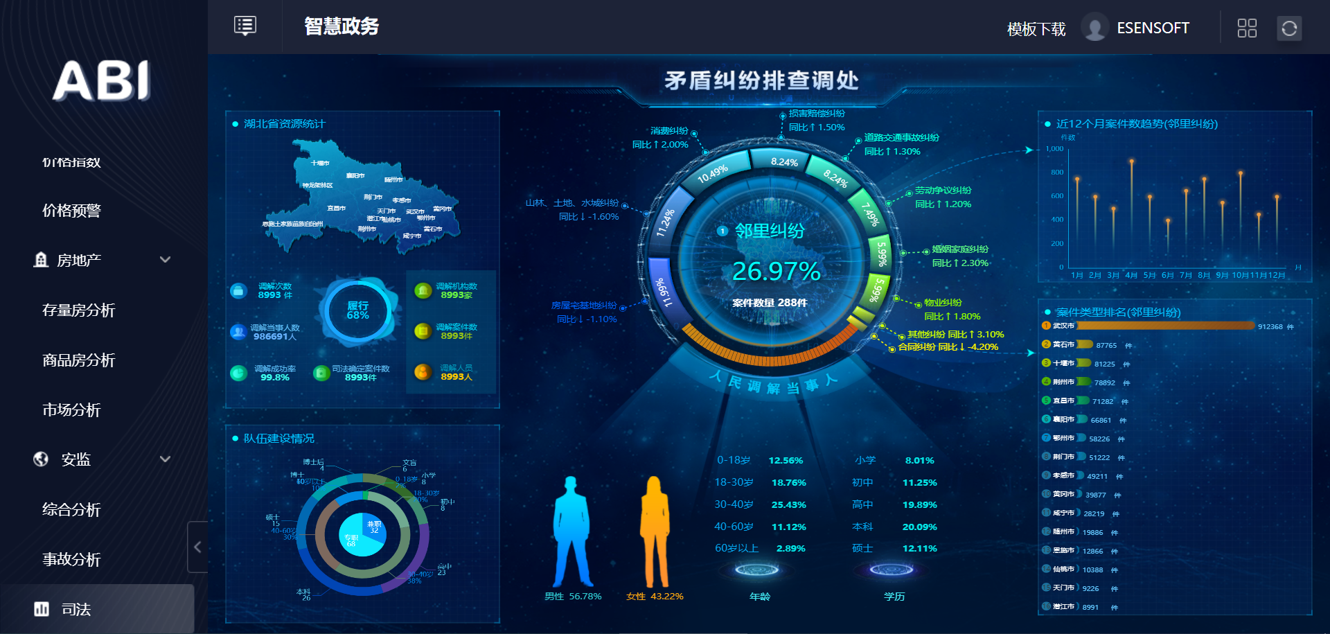 6.智慧政務(wù)大數(shù)據(jù)平臺BI系統(tǒng)-智慧司法平臺