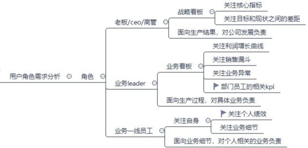 在后臺中,數(shù)據(jù)面板能夠直觀反映出業(yè)務(wù)變化,并有助于決策層發(fā)出業(yè)務(wù)調(diào)整與決策。那么搭建數(shù)據(jù)看板、實(shí)現(xiàn)數(shù)據(jù)可視化的時候,要如何搭建呢?又有哪些注意要點(diǎn)呢? —  01  — 產(chǎn)品背景分析 1. 什么是數(shù)據(jù)看板? 數(shù)據(jù)看板一般用作后臺系統(tǒng)的首頁,主要呈現(xiàn)公司當(dāng)前業(yè)務(wù)相關(guān)或運(yùn)營管理相關(guān)數(shù)據(jù)和圖表,方便公司內(nèi)部人員實(shí)時了解公司內(nèi)情,掌握業(yè)務(wù)發(fā)展情況,并能夠?qū)?shù)據(jù)變化做出業(yè)務(wù)決策。 2. 誰在使用數(shù)據(jù)看板 數(shù)據(jù)看板是公司內(nèi)所有人員都會關(guān)注的,無論是公司高層還是基層業(yè)務(wù)操作者都會關(guān)注相關(guān)的數(shù)據(jù)指標(biāo)。只是不同的角色的需求不同,如下圖: 不同的角色的默認(rèn)看板頁面是不一樣的,要設(shè)計(jì)多份看板頁面,至于不同頁面是否可以互通,這就要取決于公司業(yè)務(wù)數(shù)據(jù)是否屬于商業(yè)機(jī)密,牽扯到RBAC權(quán)限模型的設(shè)計(jì),這里就不多贅述了。 —  02  — 設(shè)計(jì)看板的前置條件 報表設(shè)計(jì) 設(shè)計(jì)看板可不是腦子一熱就開始畫原型了,那樣得到的看板是不切合實(shí)際的,而且也不一定準(zhǔn)確,尤其是對于數(shù)據(jù)大量且復(fù)雜的業(yè)務(wù)而言,需要先設(shè)計(jì)好報表。數(shù)據(jù)看板中有不少數(shù)據(jù)是需要后臺去實(shí)時計(jì)算的,在數(shù)據(jù)量太大的情況下,篩選條件和統(tǒng)計(jì)項(xiàng)較為復(fù)雜時,圖表加載速度會變慢,也會耗費(fèi)大量系統(tǒng)資源。而如果先設(shè)計(jì)好數(shù)據(jù)報表,在數(shù)據(jù)看板中,查看圖表的速度才不會收到影響。 不要急于數(shù)據(jù)可視化的設(shè)計(jì),需要數(shù)據(jù)報表所呈現(xiàn)的數(shù)據(jù)經(jīng)過多次測試沒有問題,再經(jīng)過至少一輪的迭代優(yōu)化,再著手進(jìn)行可視化方案的設(shè)計(jì)。 數(shù)據(jù)報表的設(shè)計(jì)需要經(jīng)過以下流程: 1. 構(gòu)建分析體系 (1)向業(yè)務(wù)結(jié)果的分析 b端產(chǎn)品經(jīng)理不同于c端,業(yè)務(wù)是一切產(chǎn)品設(shè)計(jì)的核心,必須圍繞業(yè)務(wù)進(jìn)行產(chǎn)品設(shè)計(jì)。首先要明確分析目的,并進(jìn)行業(yè)務(wù)診斷,最重要的是打通分析鏈路。 例如要分析利潤曲線,與利潤相關(guān)的數(shù)據(jù)有利潤率、在架率、產(chǎn)品種類、報價策略、市場行情變動等。 根據(jù)公司具體業(yè)務(wù)不同,明晰哪些是需要重點(diǎn)關(guān)注的,哪些是可以暫時擱置的,特別是要跟業(yè)務(wù)團(tuán)隊(duì)多溝通協(xié)調(diào),共同商議出一個分析框架。 一般可采用枚舉法,列舉可能干擾到核心業(yè)務(wù)數(shù)據(jù)所有因素,再一一排查。 (2)面向生產(chǎn)過程的分析 公司不僅要求分析業(yè)務(wù)結(jié)果等業(yè)務(wù)強(qiáng)相關(guān)數(shù)據(jù),生產(chǎn)過程關(guān)系到每個人的工作效率和工作成果是否達(dá)標(biāo),生產(chǎn)過程同時也是對人員kpi的考核。 如對銷售的拜訪客戶數(shù)、銷售線索獲取數(shù)量、簽單客戶數(shù),貢獻(xiàn)利潤占比等,對客服的工單處理數(shù)量、客戶評分、分鐘會話數(shù)量等,該部分分析主要根據(jù)使用者的操作記錄產(chǎn)生數(shù)據(jù)。 2. 定義觀察指標(biāo) (1)進(jìn)行維度下鉆 定義好分析框架后,要進(jìn)一步確定觀察指標(biāo),主要是對觀察維度進(jìn)行拆分,逐漸細(xì)化,只有在更精細(xì)的維度分析數(shù)據(jù)才最有可能得到準(zhǔn)確的答案。 比如在架率又可細(xì)分為日間在架率和夜間在架率,還可繼續(xù)細(xì)化為某某產(chǎn)品在架率,甚至可以細(xì)化到業(yè)務(wù)員王二在日間12:33誤操作某交易量極大的產(chǎn)品,造成利潤損失。這樣就打通了從業(yè)務(wù)結(jié)果——生產(chǎn)過程的分析鏈條。 又比如報價策略有可細(xì)化為具體sku的報價問題,該數(shù)據(jù)又可關(guān)聯(lián)到上游供應(yīng)商近期內(nèi)價格調(diào)整頻繁,而報價策略未結(jié)合該特點(diǎn)導(dǎo)致該產(chǎn)品報價過高/過低。 維度細(xì)化的過程中,可能會逐漸拆分為一級指標(biāo)、二級指標(biāo)……n級指標(biāo),但并非拆分中的每一個維度都要作為觀察指標(biāo)。是否作為報表使用要結(jié)合公司業(yè)務(wù)特點(diǎn)并且和業(yè)務(wù)部門多次溝通協(xié)調(diào)達(dá)成共識。 在維度下鉆的過程中確定哪些維度是需要進(jìn)行統(tǒng)計(jì)的,哪些是不需要用到的。 (2)統(tǒng)一數(shù)據(jù)口徑 數(shù)據(jù)口徑指的是對于數(shù)據(jù)的定義,如果系統(tǒng)內(nèi)部統(tǒng)計(jì)口徑不一致,就會導(dǎo)致業(yè)務(wù)分析出錯。如果不對數(shù)據(jù)口徑進(jìn)行清晰的定義,開發(fā)人員在調(diào)用數(shù)據(jù)時可能會直接采用已有的口徑,這個已有統(tǒng)計(jì)口徑不一定符合當(dāng)前數(shù)據(jù)指標(biāo)的需要。 產(chǎn)品人員應(yīng)該單獨(dú)書寫一份關(guān)于數(shù)據(jù)口徑的定義的文檔,并上傳至系統(tǒng)內(nèi)部的文檔共享系統(tǒng),方便業(yè)務(wù)人員隨時查閱。